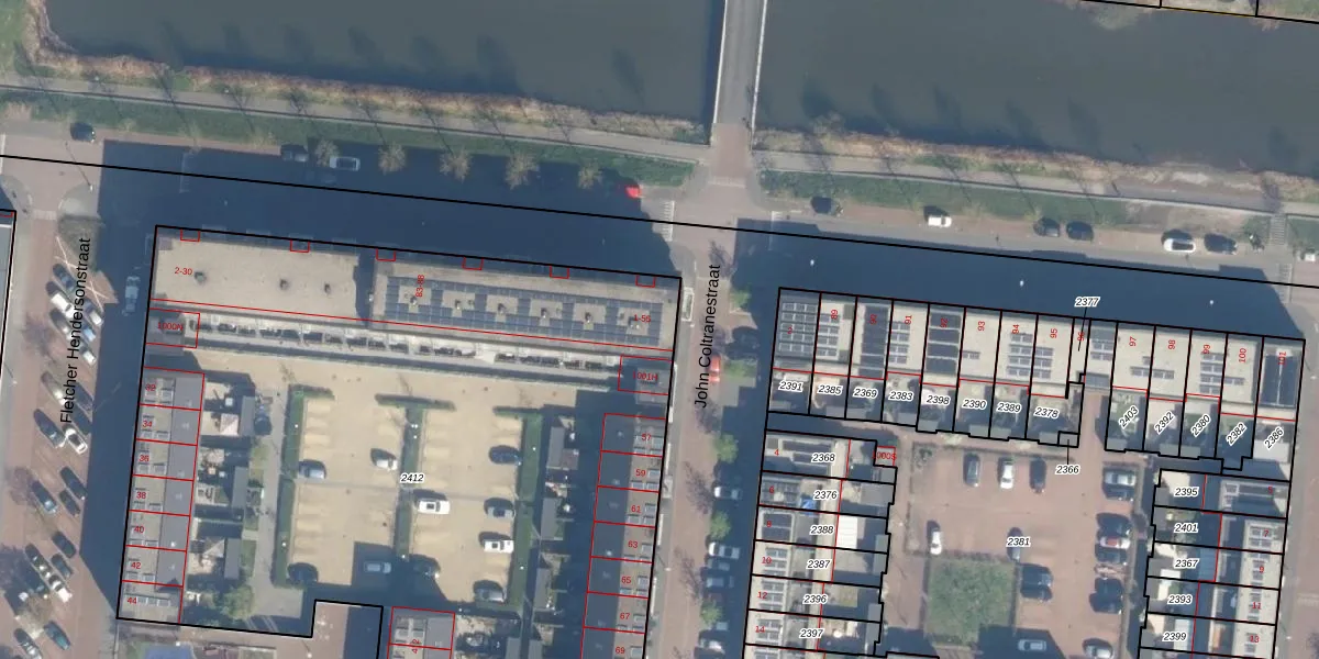 John Coltranestraat 33 is gelegen op kadastraal perceel CTR00A2412. Deze kadastrale aanduiding is uniek en wordt gebruikt door het Kadaster om eigendomsrechten en andere zakelijke rechten vast te leggen. Het perceel maakt onderdeel uit van de kadastrale gemeente Catharijne.