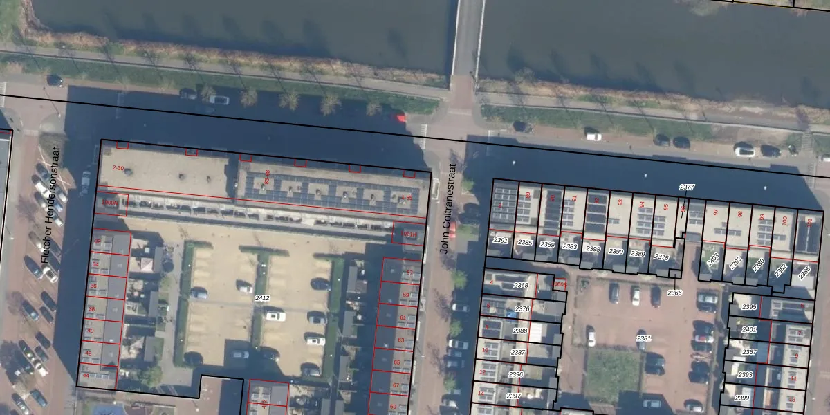 John Coltranestraat 9 is gelegen op kadastraal perceel CTR00A2412. Deze kadastrale aanduiding is uniek en wordt gebruikt door het Kadaster om eigendomsrechten en andere zakelijke rechten vast te leggen. Het perceel maakt onderdeel uit van de kadastrale gemeente Catharijne.