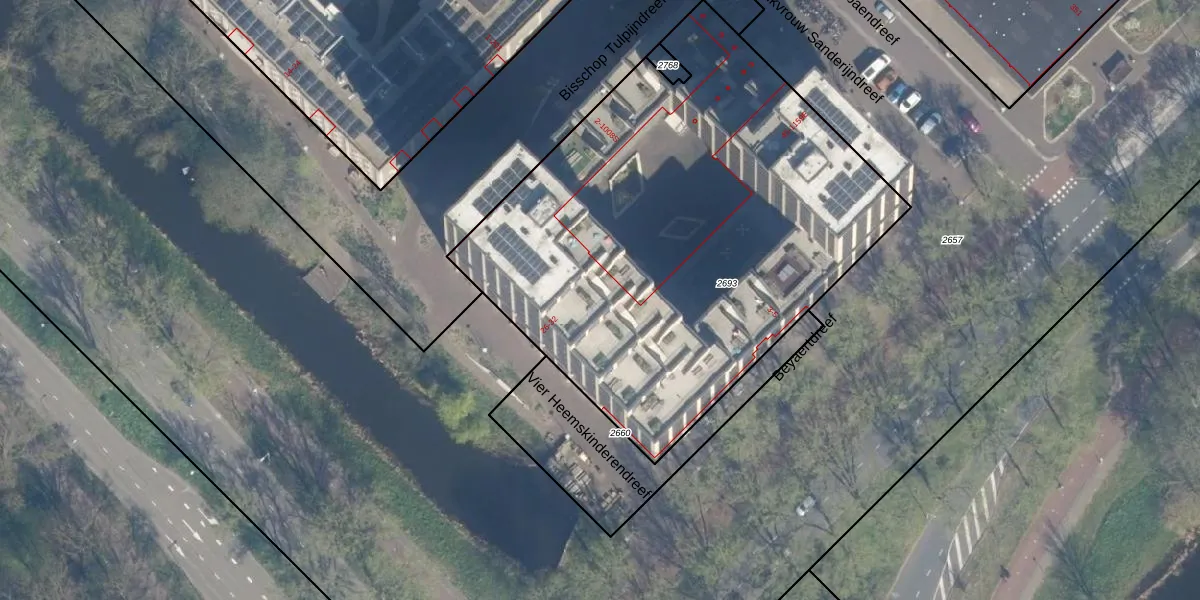 Het perceel waarop het adres ligt is UTT00-H-2693. De afkorting 'UTT00' staat voor kadastrale gemeente Utrecht. De gemiddelde perceeloppervlakte in de kadastrale gemeente Utrecht is 1438,48 m². Dit perceel is met zijn 2941 m² dus groter dan gemiddeld. Het grootste perceel in de kadastrale gemeente is 90,1 ha. Het kleinste perceel heeft een oppervlakte van 0 m². Er zijn 647 adressen aanwezig op het perceel. In de Basisregistratie Kadaster (BRK) werden de grenzen van het perceel geregistreerd op 11-07-2024.