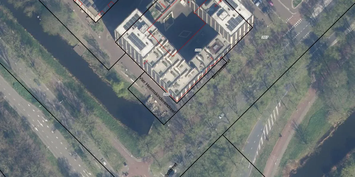 Het perceel waarop het adres ligt is UTT00-H-2693. De afkorting 'UTT00' staat voor kadastrale gemeente Utrecht. De gemiddelde perceeloppervlakte in de kadastrale gemeente Utrecht is 1438,57 m². Dit perceel is met zijn 2941 m² dus groter dan gemiddeld. Het kleinste perceel in de kadastrale gemeente is 0 m² groot. De grootste perceeloppervlakte is 90,1 ha. Op het perceel zijn 647 adressen aanwezig. De huidige grenzen van het perceel zijn digitaal in de Basisregistratie Kadaster (BRK) geregistreerd op 11-07-2024.