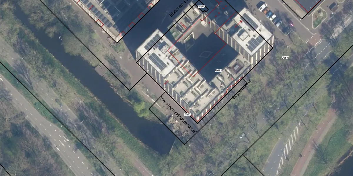 Het perceel waarop het adres ligt is UTT00-H-2693. De afkorting 'UTT00' staat voor kadastrale gemeente Utrecht. De gemiddelde perceeloppervlakte in de kadastrale gemeente Utrecht is 1438,48 m². Dit perceel is met zijn 2941 m² dus groter dan gemiddeld. De grootste perceeloppervlakte in de kadastrale gemeente is 90,1 ha. De kleinste oppervlakte bedraagt 0 m². Er zijn 647 adressen aanwezig op het perceel. De huidige grenzen van het perceel zijn digitaal in de Basisregistratie Kadaster (BRK) geregistreerd op 11-07-2024.