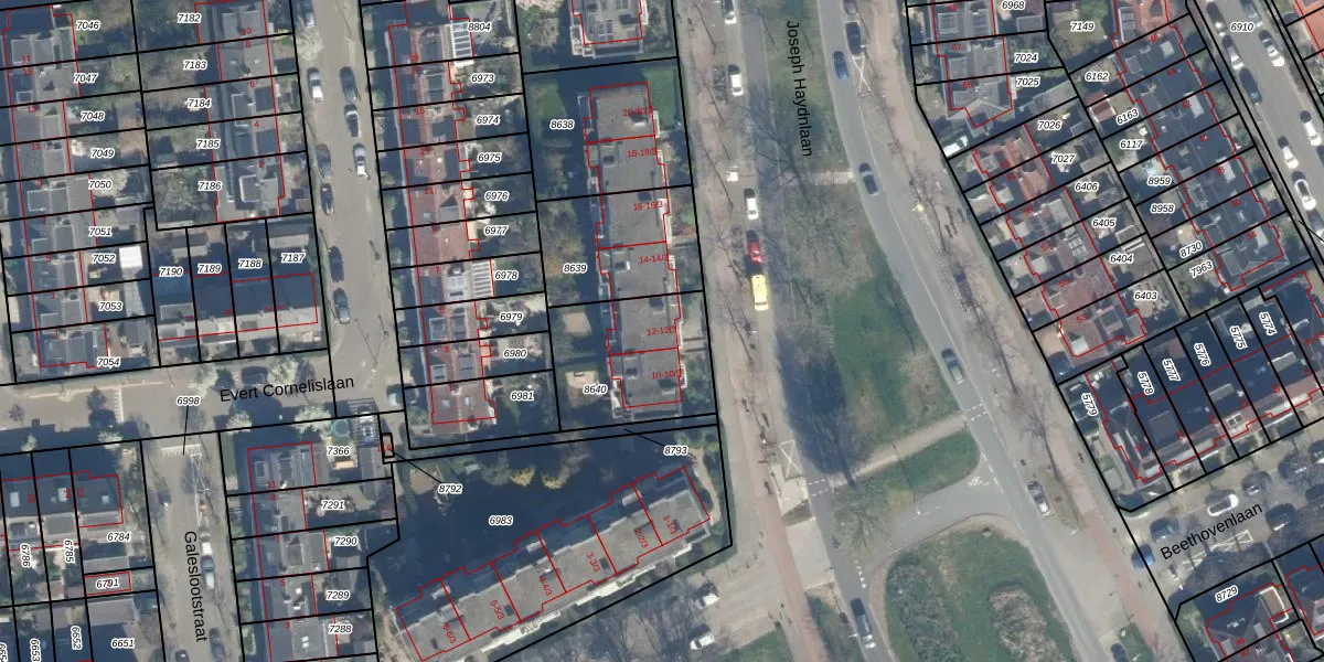 Het perceel waarop Joseph Haydnlaan 12-3 staat heeft een oppervlakte van 447 m². Dit is een groot perceel. De perceeloppervlakte wordt geregistreerd door het Kadaster. Gedetailleerde informatie over de maten van dit perceel kunt u vinden in het rapport Kadastrale kaart met maatvoering van Joseph Haydnlaan 12-3.