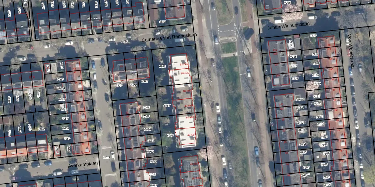 Het perceel waarop het adres ligt is CTR00-C-6987. De afkorting 'CTR00' staat voor kadastrale gemeente Catharijne. Het perceel is 379 m² groot. Dat is kleiner dan de gemiddelde perceeloppervlakte in Catharijne, dat op 828,25 m² ligt. Het grootste perceel in de kadastrale gemeente is 35,6 ha. Het kleinste perceel heeft een oppervlakte van 0 m². Er zijn 8 adressen aanwezig op het perceel. De huidige grenzen van het perceel zijn digitaal in de Basisregistratie Kadaster (BRK) geregistreerd op 19-09-1997.