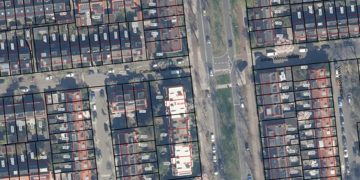 Het perceel waarop het adres ligt is CTR00-C-6988. De afkorting 'CTR00' staat voor kadastrale gemeente Catharijne. Het perceel is kleiner dan gemiddeld in Catharijne. Het perceel is 479 m² groot, terwijl het gemiddelde ligt op 828,25 m². De grootste perceeloppervlakte in de kadastrale gemeente is 35,6 ha. De kleinste oppervlakte bedraagt 0 m². Op het perceel zijn 8 adressen aanwezig. De laatste wijziging in het de Basisregistratie Kadaster (BRK) was op 19-09-1997.