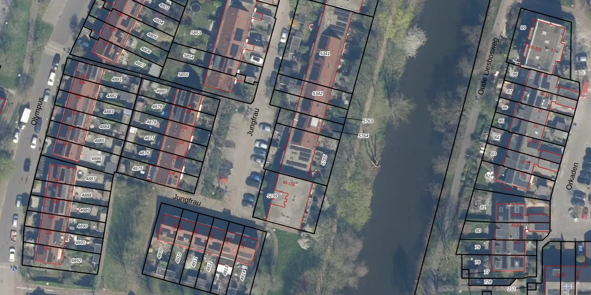 Jungfrau 128 is gelegen op kadastraal perceel UTT00P5765. Deze kadastrale aanduiding is uniek en wordt gebruikt door het Kadaster om eigendomsrechten en andere zakelijke rechten vast te leggen. Het perceel maakt onderdeel uit van de kadastrale gemeente Utrecht.