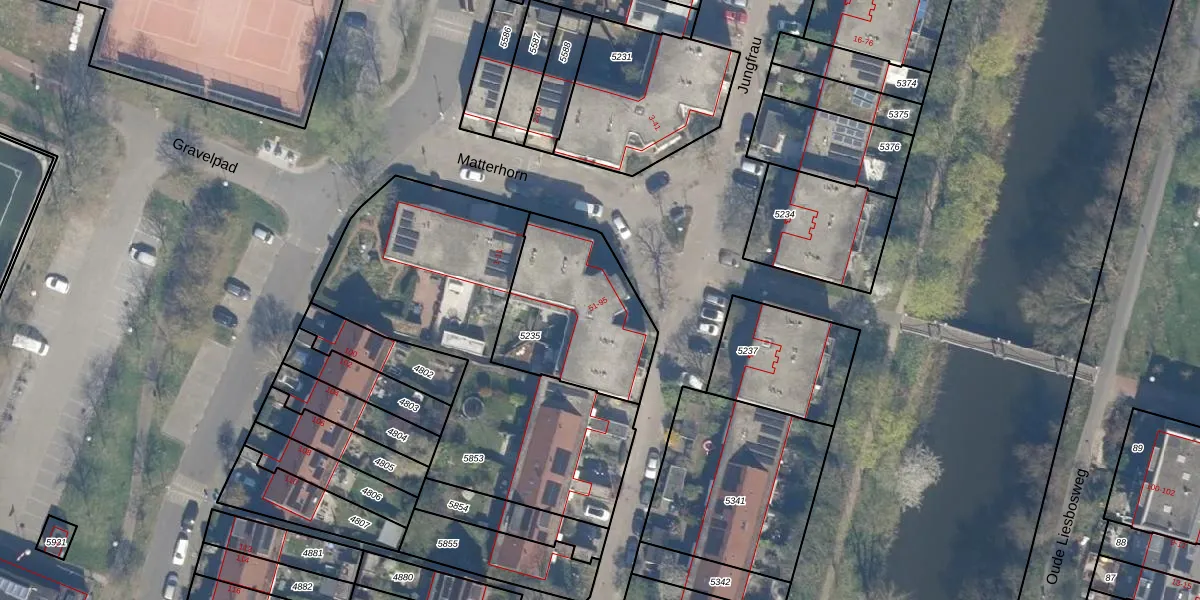 Het perceel waarop Jungfrau 51 staat heeft een oppervlakte van 570 m². Dit is een groot perceel. De perceeloppervlakte wordt geregistreerd door het Kadaster. Gedetailleerde informatie over de maten van dit perceel kunt u vinden in het rapport Kadastrale kaart met maatvoering van Jungfrau 51.
