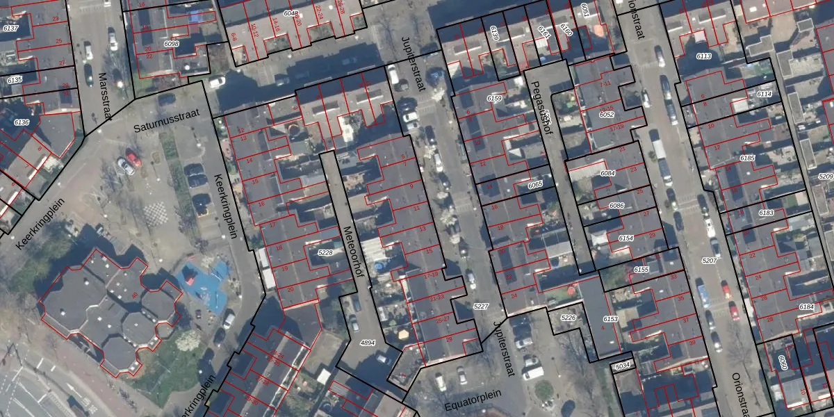 Het perceel waarop Jupiterstraat 11 staat heeft een oppervlakte van 4284 m². Dit is een zeer groot perceel. De perceeloppervlakte wordt geregistreerd door het Kadaster. Gedetailleerde informatie over de maten van dit perceel kunt u vinden in het rapport Kadastrale kaart met maatvoering van Jupiterstraat 11.