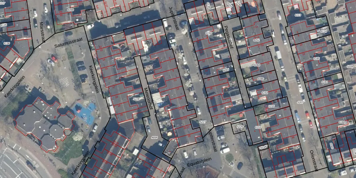 Jupiterstraat 13 is gelegen op kadastraal perceel ASD40D5228. Deze kadastrale aanduiding is uniek en wordt gebruikt door het Kadaster om eigendomsrechten en andere zakelijke rechten vast te leggen. Het perceel maakt onderdeel uit van de kadastrale gemeente Abstede.