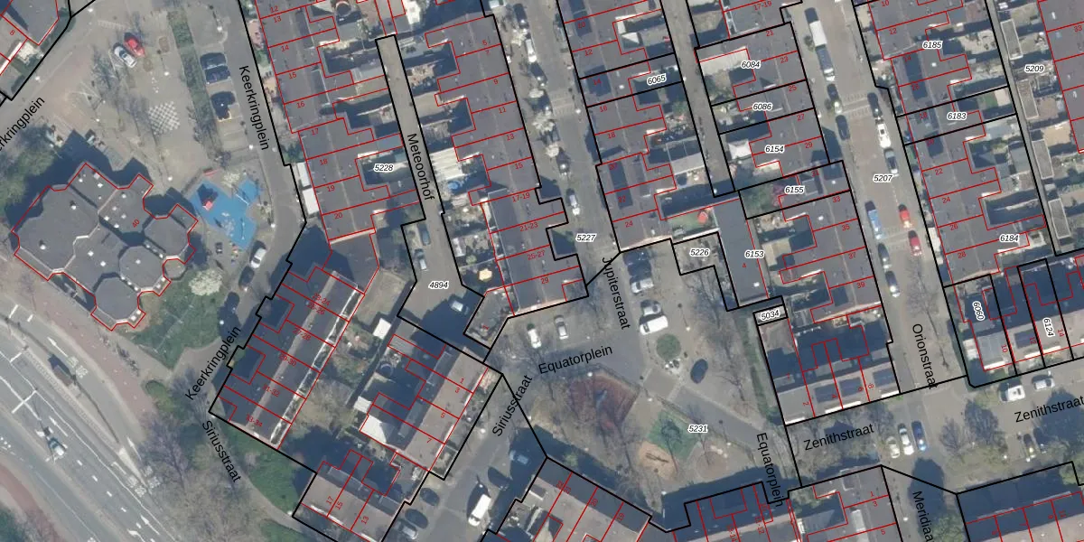 Het perceel waarop Jupiterstraat 27 staat heeft een oppervlakte van 4284 m². Dit is een zeer groot perceel. De perceeloppervlakte wordt geregistreerd door het Kadaster. Gedetailleerde informatie over de maten van dit perceel kunt u vinden in het rapport Kadastrale kaart met maatvoering van Jupiterstraat 27.