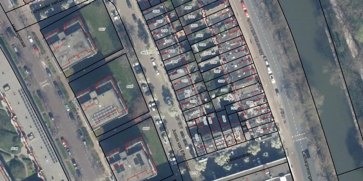 Justus van Effenstraat 46-A is gelegen op kadastraal perceel CTR00D3173. Deze kadastrale aanduiding is uniek en wordt gebruikt door het Kadaster om eigendomsrechten en andere zakelijke rechten vast te leggen. Het perceel maakt onderdeel uit van de kadastrale gemeente Catharijne.