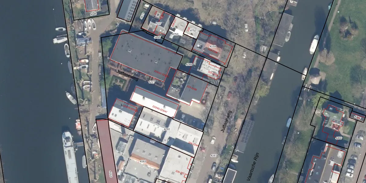 Jutfaseweg 223-5 is gelegen op kadastraal perceel UTT00P6227. Deze kadastrale aanduiding is uniek en wordt gebruikt door het Kadaster om eigendomsrechten en andere zakelijke rechten vast te leggen. Het perceel maakt onderdeel uit van de kadastrale gemeente Utrecht.