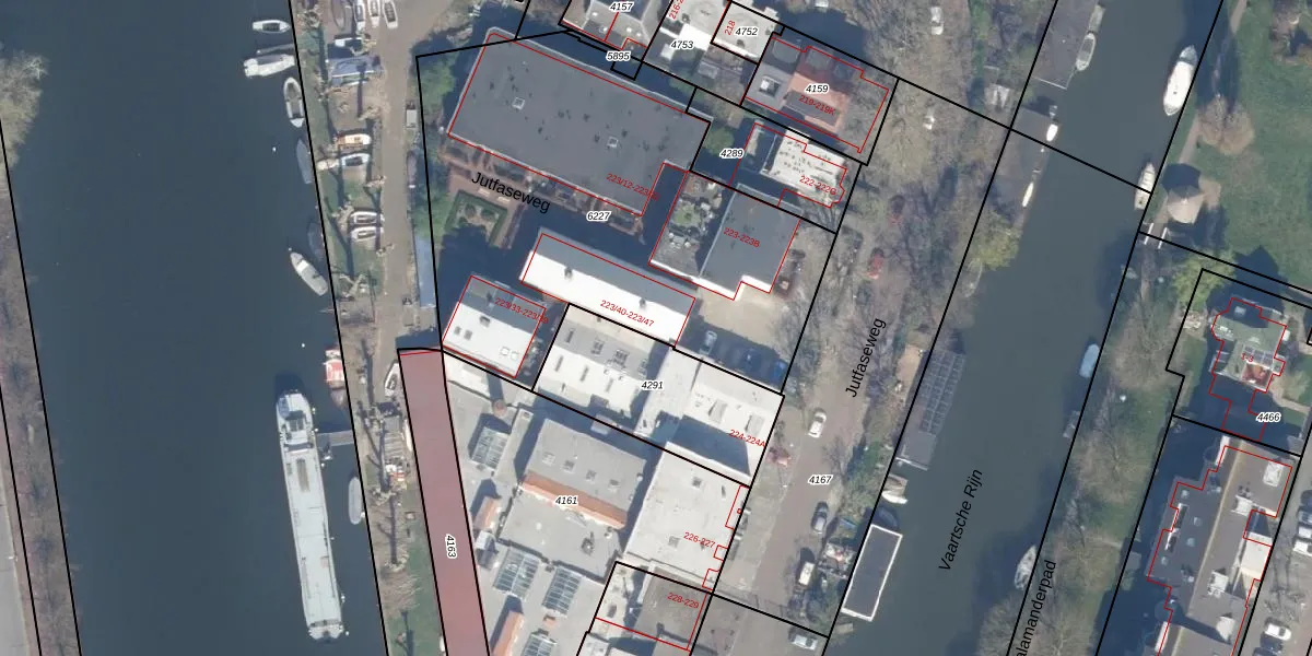 Jutfaseweg 223-47 is gelegen op kadastraal perceel UTT00P6227. Deze kadastrale aanduiding is uniek en wordt gebruikt door het Kadaster om eigendomsrechten en andere zakelijke rechten vast te leggen. Het perceel maakt onderdeel uit van de kadastrale gemeente Utrecht.