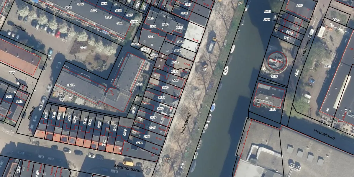Jutfaseweg 53 is gelegen op kadastraal perceel CTR00D3450. Deze kadastrale aanduiding is uniek en wordt gebruikt door het Kadaster om eigendomsrechten en andere zakelijke rechten vast te leggen. Het perceel maakt onderdeel uit van de kadastrale gemeente Catharijne.