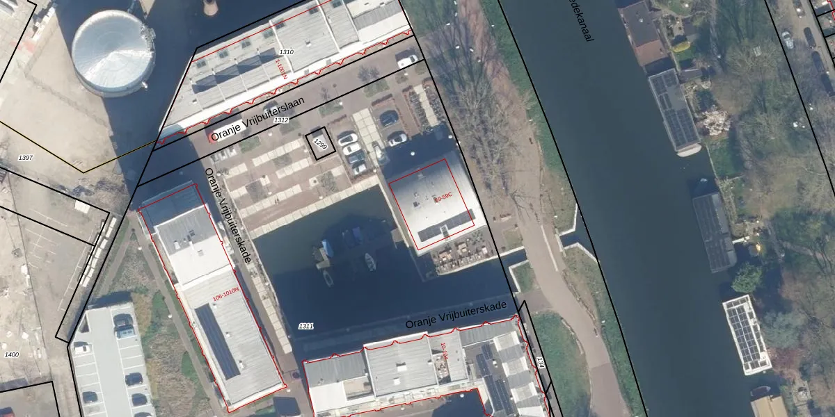 Het perceel waarop Kanaalweg 59-C staat heeft een oppervlakte van 8691 m². Dit is een zeer groot perceel. De perceeloppervlakte wordt geregistreerd door het Kadaster. Gedetailleerde informatie over de maten van dit perceel kunt u vinden in het rapport Kadastrale kaart met maatvoering van Kanaalweg 59-C.