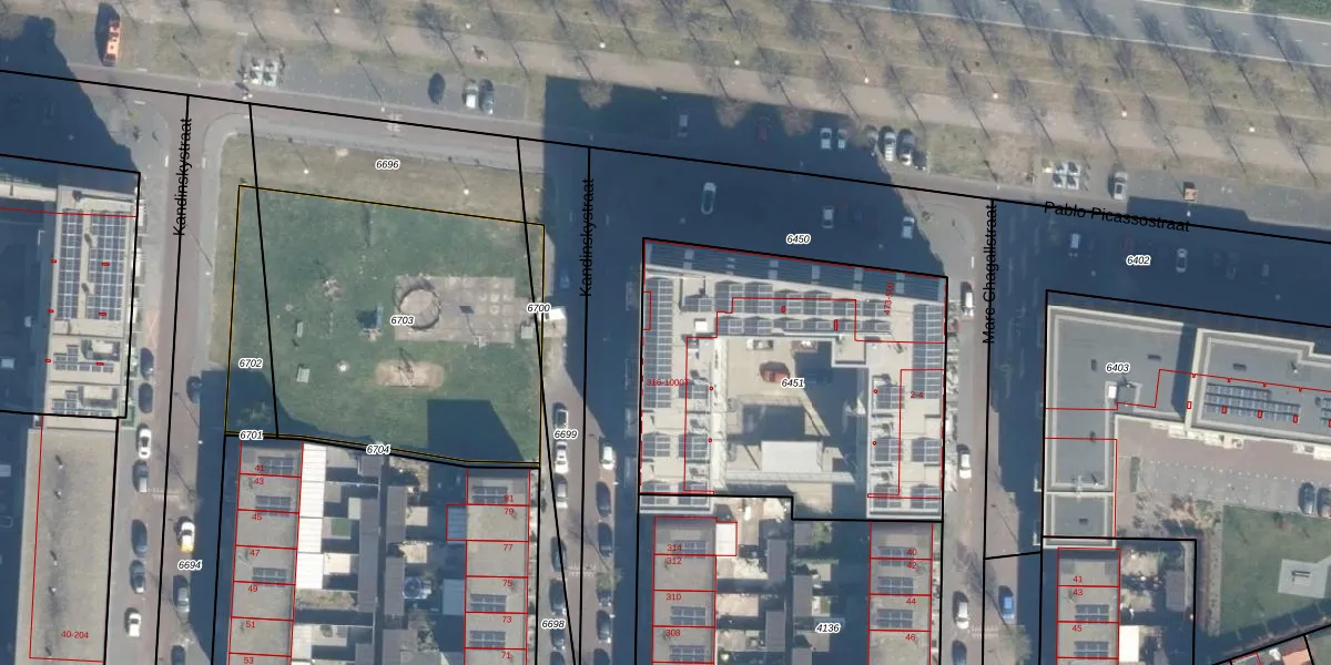 Het perceel waarop Kandinskystraat 320 staat heeft een oppervlakte van 1705 m². Dit is een zeer groot perceel. De perceeloppervlakte wordt geregistreerd door het Kadaster. Gedetailleerde informatie over de maten van dit perceel kunt u vinden in het rapport Kadastrale kaart met maatvoering van Kandinskystraat 320.