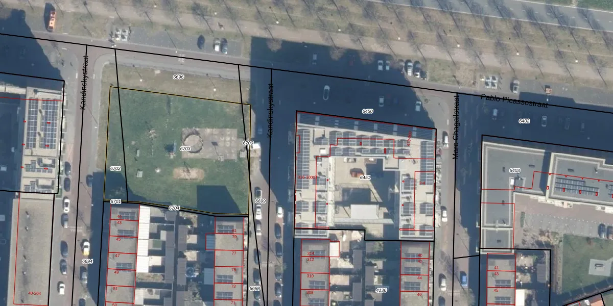 Het perceel waarop Kandinskystraat 352 staat heeft een oppervlakte van 1705 m². Dit is een zeer groot perceel. De perceeloppervlakte wordt geregistreerd door het Kadaster. Gedetailleerde informatie over de maten van dit perceel kunt u vinden in het rapport Kadastrale kaart met maatvoering van Kandinskystraat 352.