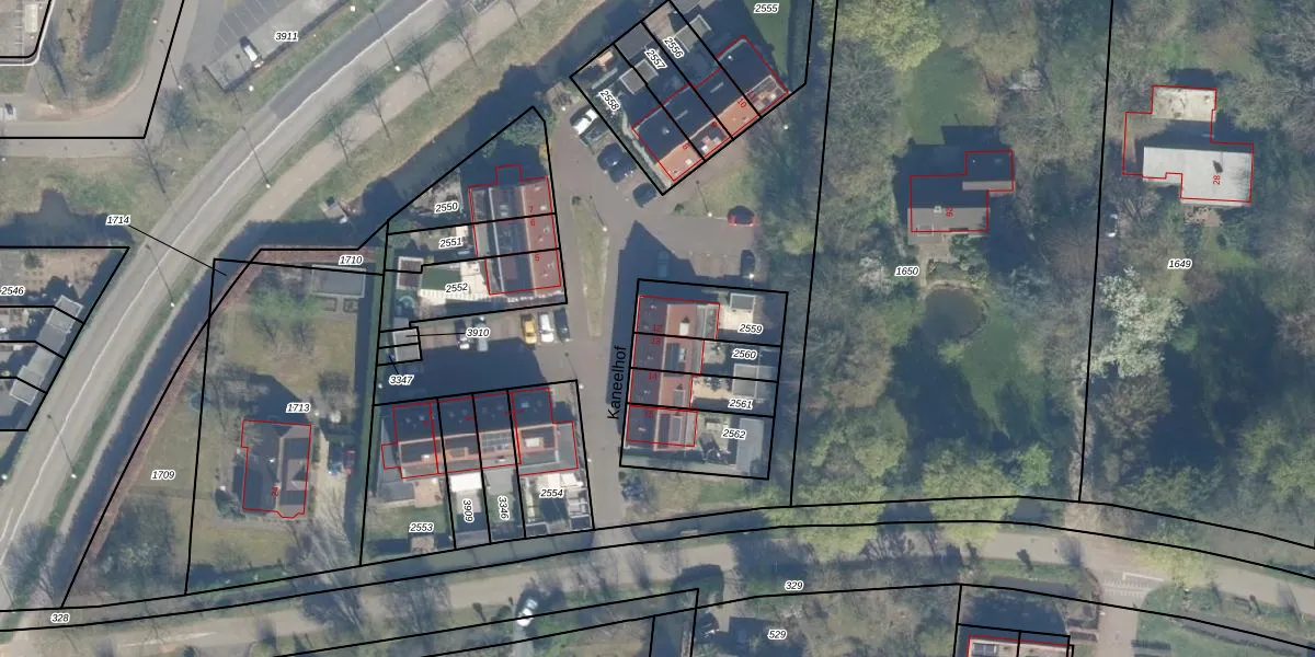 Kaneelhof 12 is gelegen op kadastraal perceel UTT00V2559. Deze kadastrale aanduiding is uniek en wordt gebruikt door het Kadaster om eigendomsrechten en andere zakelijke rechten vast te leggen. Het perceel maakt onderdeel uit van de kadastrale gemeente Utrecht.