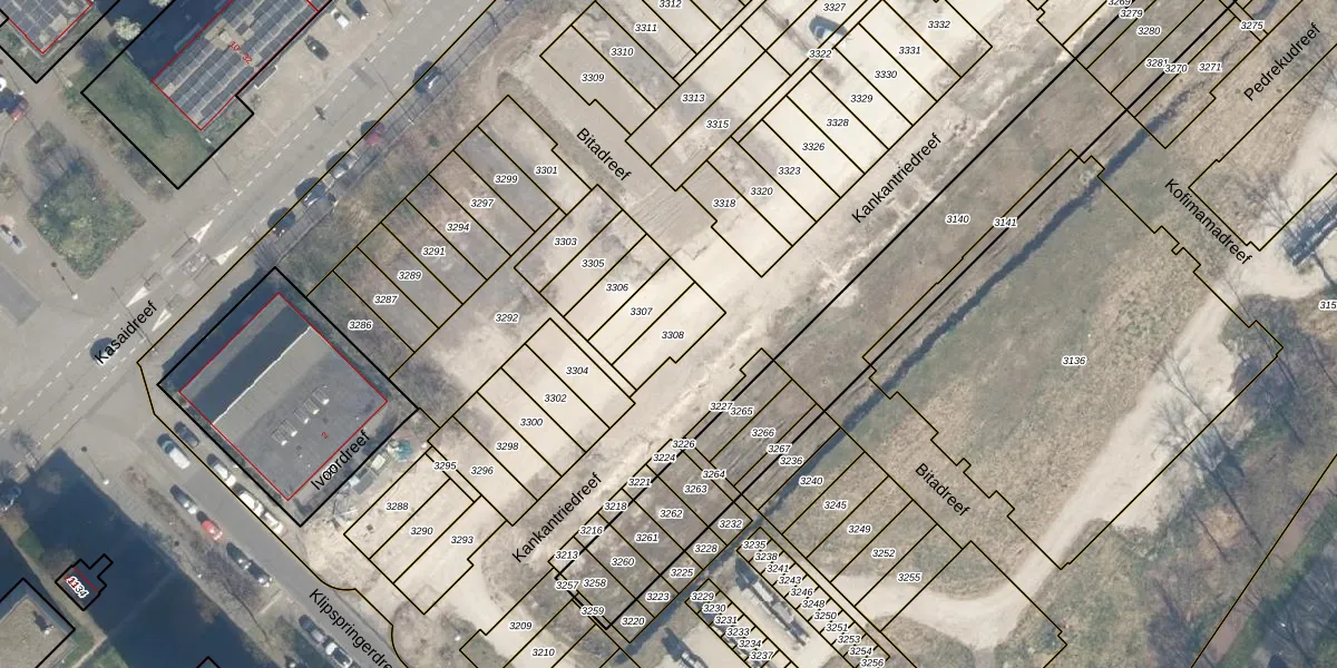 Gebruik de zoekbalk of klik op een perceel voor informatie over de adressen binnen dit perceel.