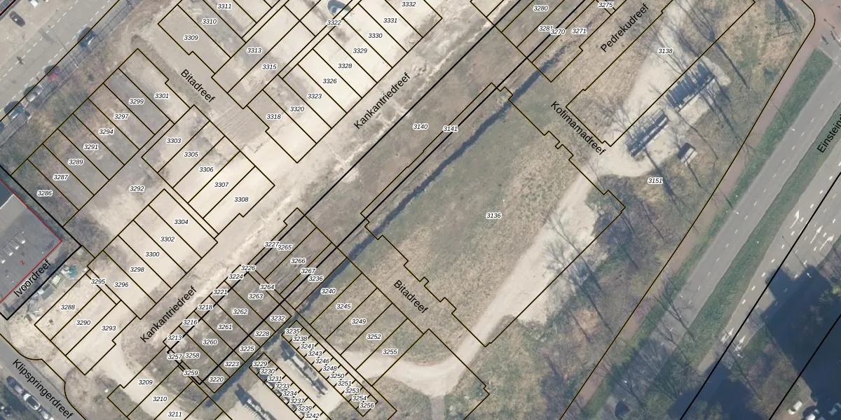 Het perceel waarop Kankantriedreef 149 staat heeft een oppervlakte van 1919 m². Dit is een zeer groot perceel. De perceeloppervlakte wordt geregistreerd door het Kadaster. Gedetailleerde informatie over de maten van dit perceel kunt u vinden in het rapport Kadastrale kaart met maatvoering van Kankantriedreef 149.