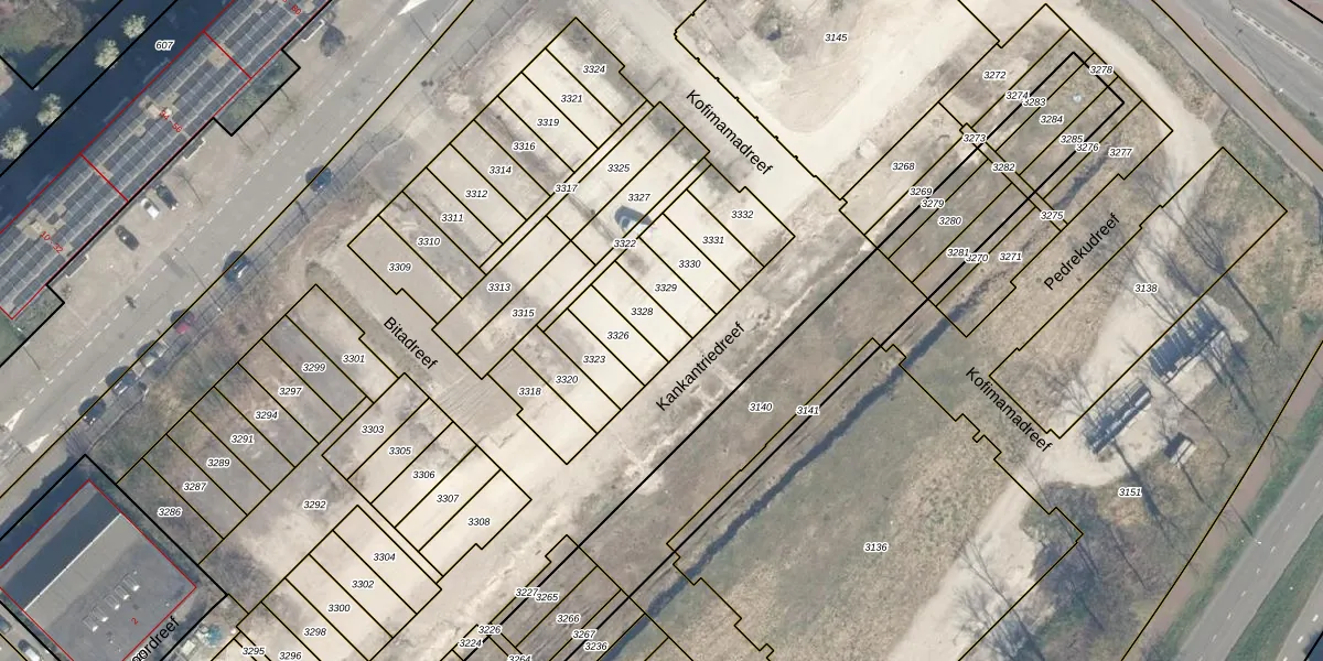 Gebruik de zoekbalk of klik op een perceel voor informatie over de adressen binnen dit perceel.
