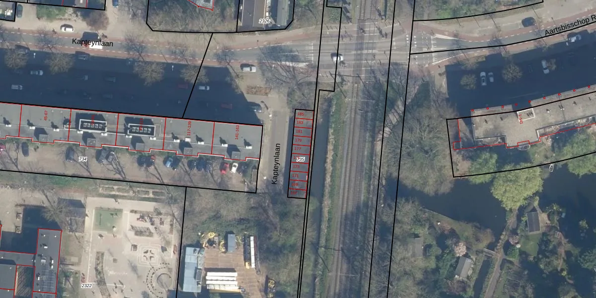 Kapteynlaan 177 is gelegen op kadastraal perceel UTT00L735. Deze kadastrale aanduiding is uniek en wordt gebruikt door het Kadaster om eigendomsrechten en andere zakelijke rechten vast te leggen. Het perceel maakt onderdeel uit van de kadastrale gemeente Utrecht.