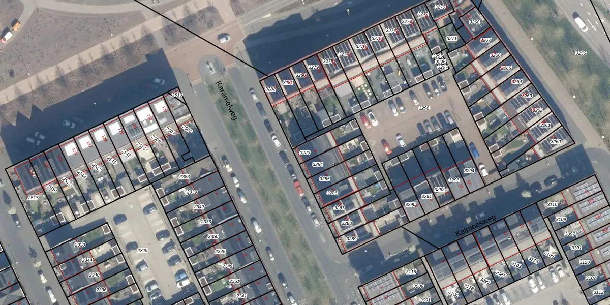 Gebruik de zoekbalk of klik op een perceel voor informatie over de adressen binnen dit perceel.