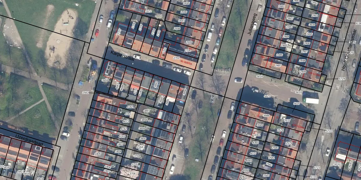 Gebruik de zoekbalk of klik op een perceel voor informatie over de adressen binnen dit perceel.