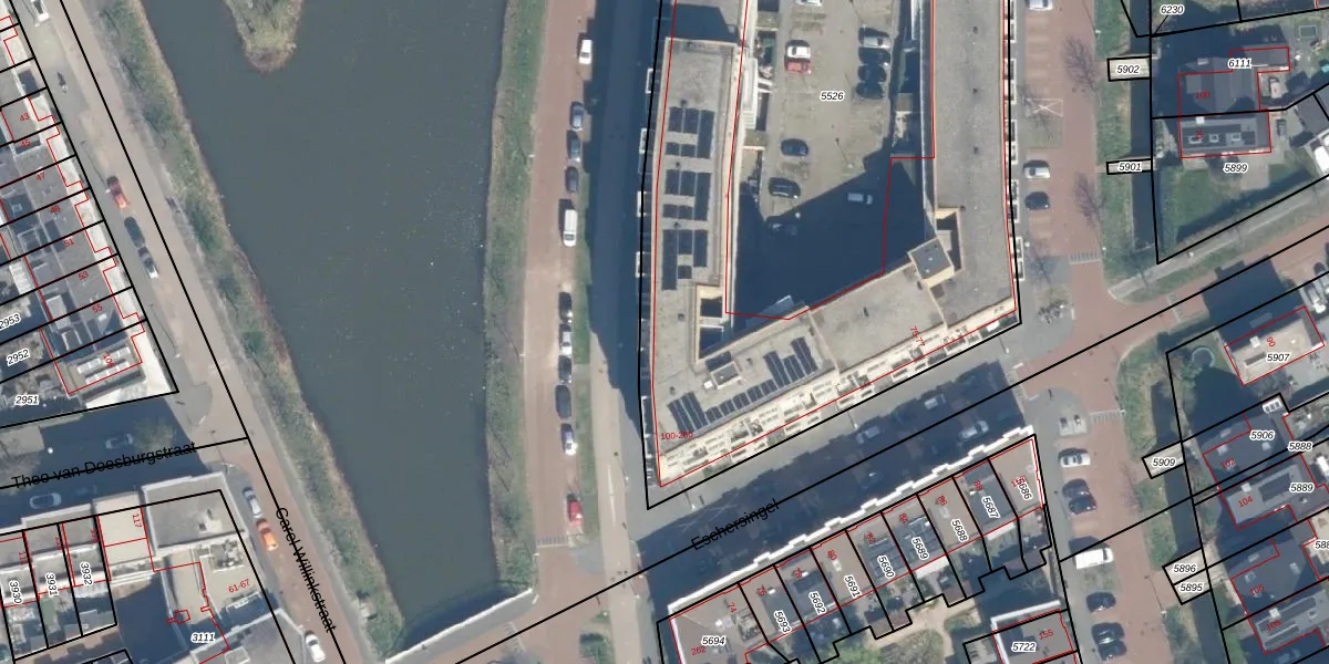Het perceel waarop Kees van Dongensingel 116 staat heeft een oppervlakte van 5215 m². Dit is een zeer groot perceel. De perceeloppervlakte wordt geregistreerd door het Kadaster. Gedetailleerde informatie over de maten van dit perceel kunt u vinden in het rapport Kadastrale kaart met maatvoering van Kees van Dongensingel 116.