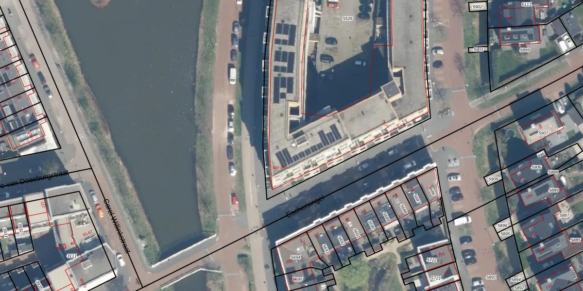 Het perceel waarop het adres ligt is UTT00-V-5526. De afkorting 'UTT00' staat voor kadastrale gemeente Utrecht. Het perceel is met 5215 m² relatief groot. Het gemiddelde ligt in de kadastrale gemeente Utrecht op 1438,88 m². Het kleinste perceel in de kadastrale gemeente is 0 m² groot. De grootste perceeloppervlakte is 90,1 ha. Op het perceel liggen in totaal 109 adressen. De huidige grenzen van het perceel zijn digitaal in de Basisregistratie Kadaster (BRK) geregistreerd op 12-12-2016.