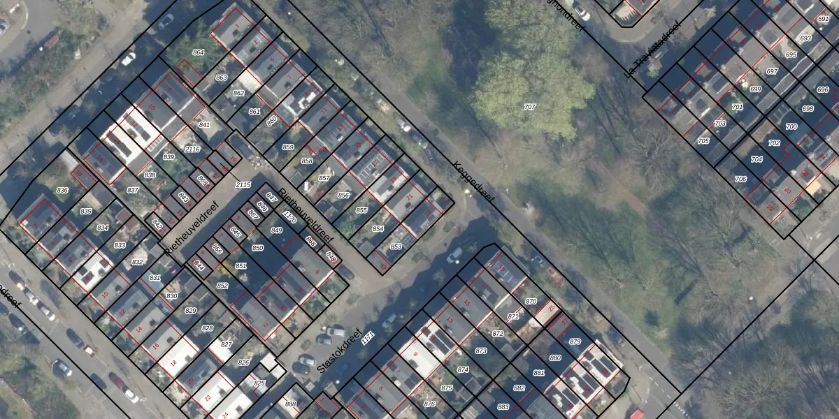 Keggedreef 23 is gelegen op kadastraal perceel UTT00H853. Deze kadastrale aanduiding is uniek en wordt gebruikt door het Kadaster om eigendomsrechten en andere zakelijke rechten vast te leggen. Het perceel maakt onderdeel uit van de kadastrale gemeente Utrecht.