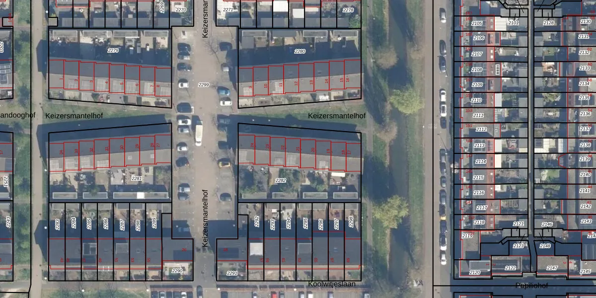 Het perceel waarop Keizersmantelhof 21 staat heeft een oppervlakte van 1034 m². Dit is een zeer groot perceel. De perceeloppervlakte wordt geregistreerd door het Kadaster. Gedetailleerde informatie over de maten van dit perceel kunt u vinden in het rapport Kadastrale kaart met maatvoering van Keizersmantelhof 21.