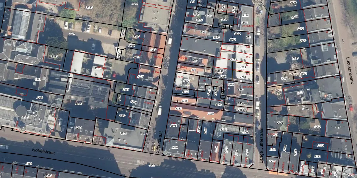Het perceel waarop Keizerstraat 11 staat heeft een oppervlakte van 44 m². Dit is een klein perceel. De perceeloppervlakte wordt geregistreerd door het Kadaster. Gedetailleerde informatie over de maten van dit perceel kunt u vinden in het rapport Kadastrale kaart met maatvoering van Keizerstraat 11.