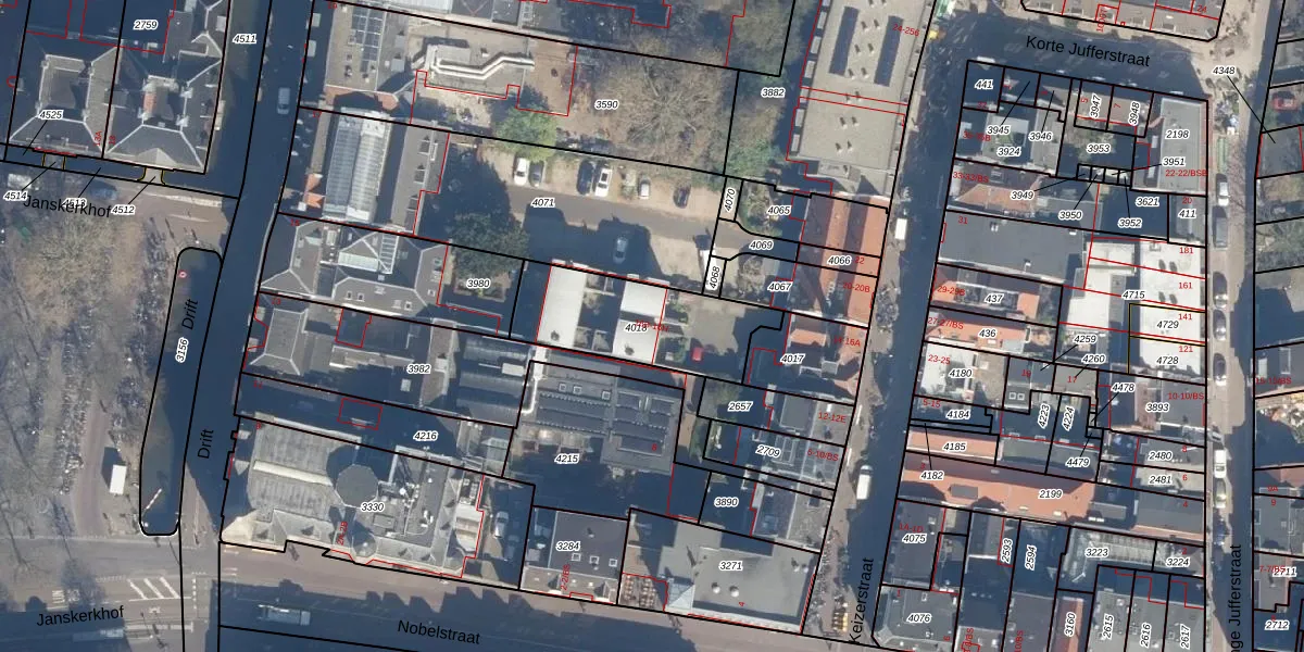 Het perceel waarop Keizerstraat 16-B staat heeft een oppervlakte van 455 m². Dit is een groot perceel. De perceeloppervlakte wordt geregistreerd door het Kadaster. Gedetailleerde informatie over de maten van dit perceel kunt u vinden in het rapport Kadastrale kaart met maatvoering van Keizerstraat 16-B.