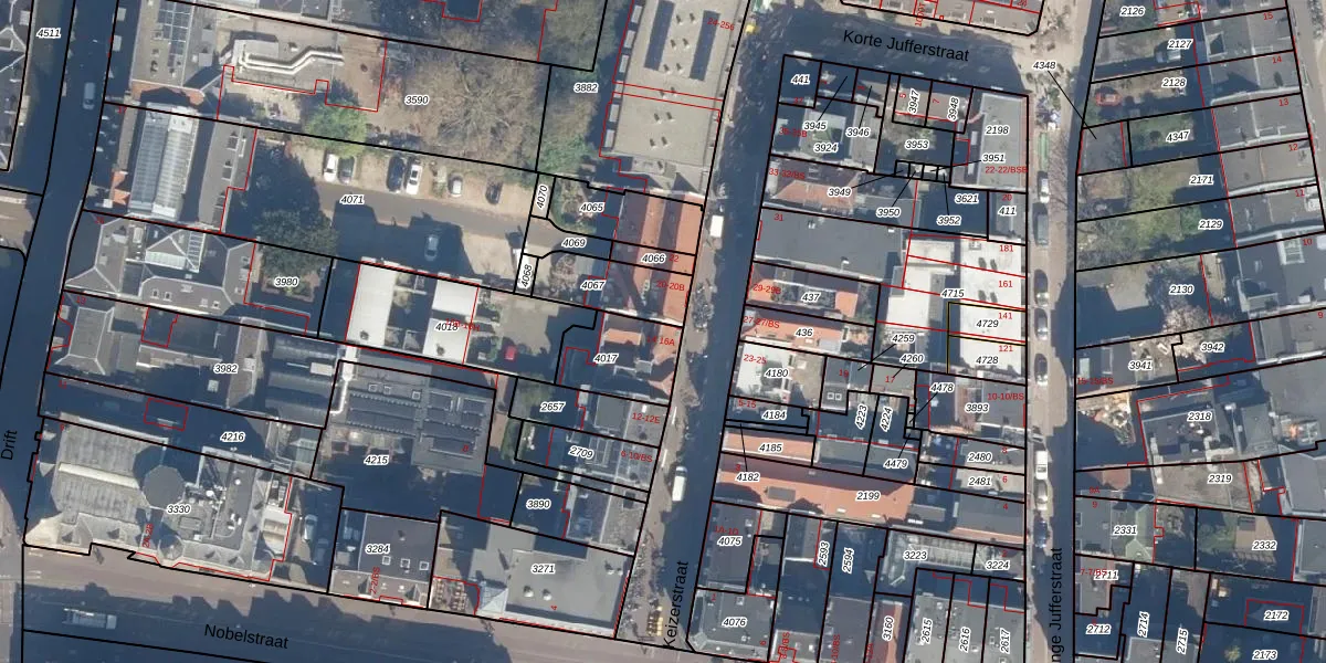 Het perceel waarop Keizerstraat 16 staat heeft een oppervlakte van 185 m². Dit is een middelgroot perceel. De perceeloppervlakte wordt geregistreerd door het Kadaster. Gedetailleerde informatie over de maten van dit perceel kunt u vinden in het rapport Kadastrale kaart met maatvoering van Keizerstraat 16.