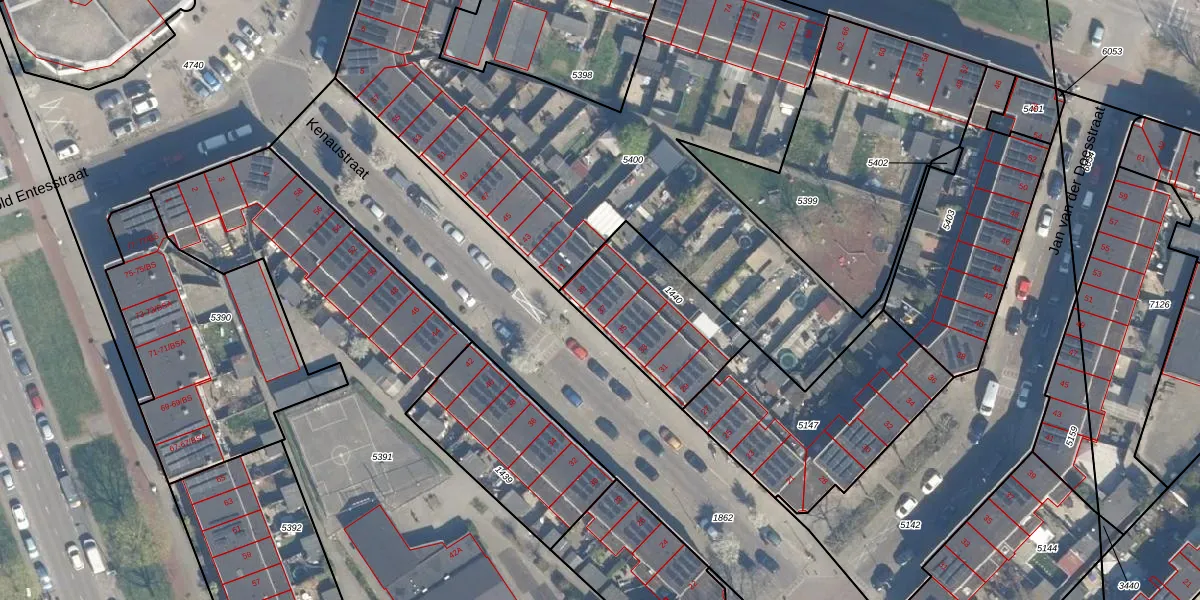 Het perceel waarop Kenaustraat 37 staat heeft een oppervlakte van 461 m². Dit is een groot perceel. De perceeloppervlakte wordt geregistreerd door het Kadaster. Gedetailleerde informatie over de maten van dit perceel kunt u vinden in het rapport Kadastrale kaart met maatvoering van Kenaustraat 37.
