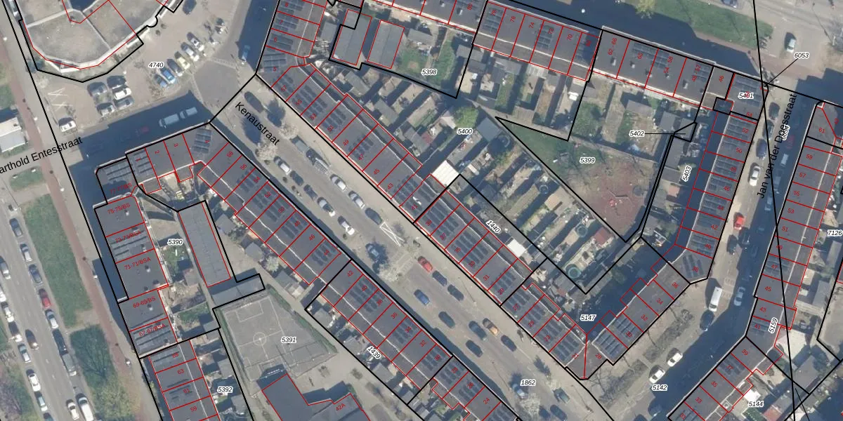 Kenaustraat 41 is gelegen op kadastraal perceel ZLN02C5400. Deze kadastrale aanduiding is uniek en wordt gebruikt door het Kadaster om eigendomsrechten en andere zakelijke rechten vast te leggen. Het perceel maakt onderdeel uit van de kadastrale gemeente Zuilen.