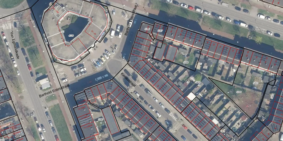 Kenaustraat 55 is gelegen op kadastraal perceel ZLN02C5400. Deze kadastrale aanduiding is uniek en wordt gebruikt door het Kadaster om eigendomsrechten en andere zakelijke rechten vast te leggen. Het perceel maakt onderdeel uit van de kadastrale gemeente Zuilen.