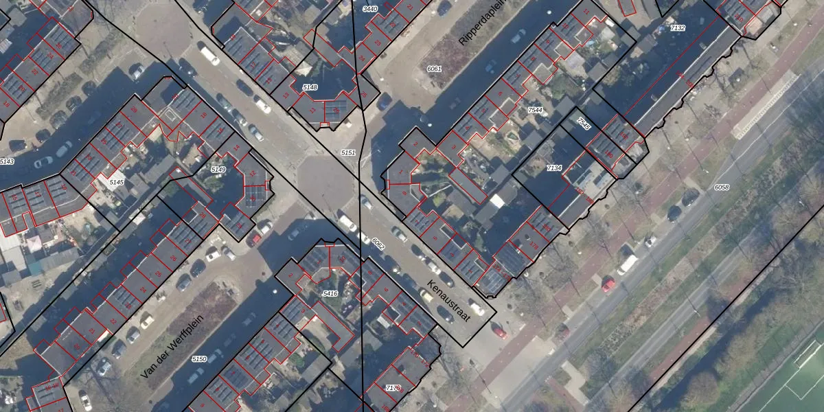 Kenaustraat 9 is gelegen op kadastraal perceel LWR01B7544. Deze kadastrale aanduiding is uniek en wordt gebruikt door het Kadaster om eigendomsrechten en andere zakelijke rechten vast te leggen. Het perceel maakt onderdeel uit van de kadastrale gemeente Lauwerecht.