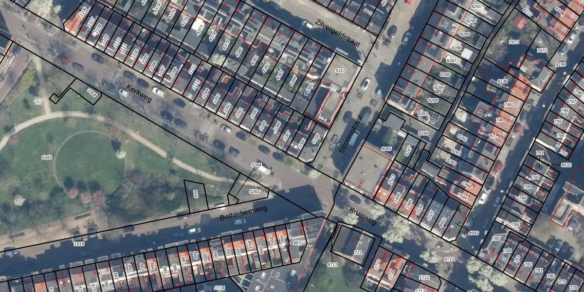 Gebruik de zoekbalk of klik op een perceel voor informatie over de adressen binnen dit perceel.