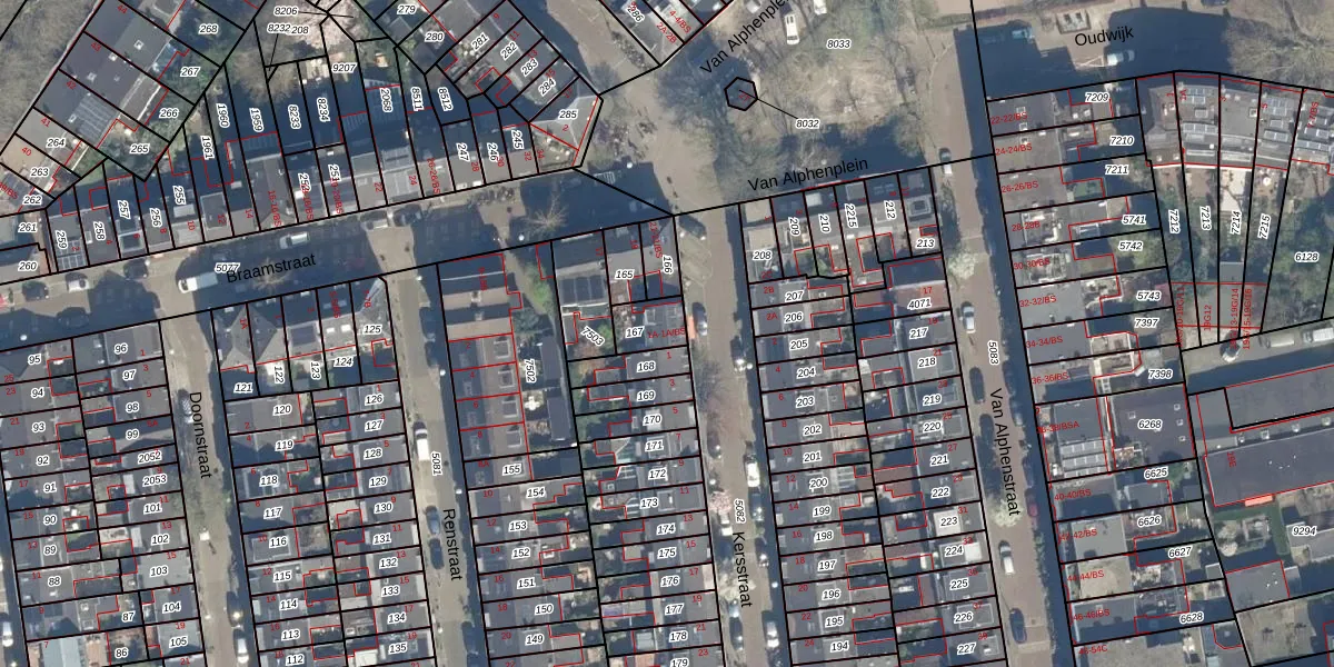 Het perceel waarop Kersstraat 1-A-BS staat heeft een oppervlakte van 82 m². Dit is een klein perceel. De perceeloppervlakte wordt geregistreerd door het Kadaster. Gedetailleerde informatie over de maten van dit perceel kunt u vinden in het rapport Kadastrale kaart met maatvoering van Kersstraat 1-A-BS.