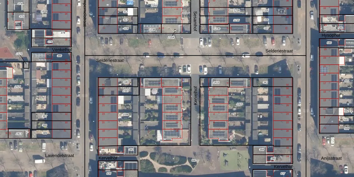 Het perceel waarop Kervelhof 23 staat heeft een oppervlakte van 1785 m². Dit is een zeer groot perceel. De perceeloppervlakte wordt geregistreerd door het Kadaster. Gedetailleerde informatie over de maten van dit perceel kunt u vinden in het rapport Kadastrale kaart met maatvoering van Kervelhof 23.