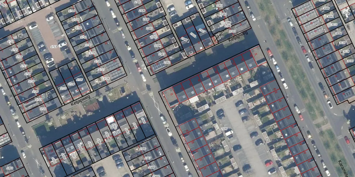 Het perceel waarop Ketjapweg 32 staat heeft een oppervlakte van 6150 m². Dit is een zeer groot perceel. De perceeloppervlakte wordt geregistreerd door het Kadaster. Gedetailleerde informatie over de maten van dit perceel kunt u vinden in het rapport Kadastrale kaart met maatvoering van Ketjapweg 32.