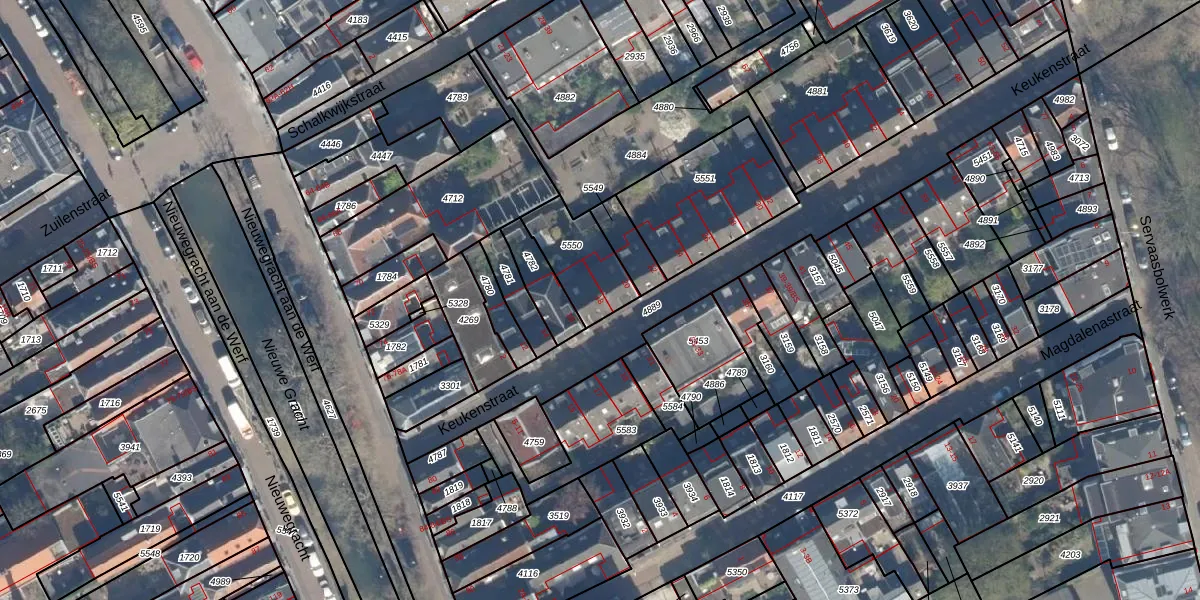 Keukenstraat 18 is gelegen op kadastraal perceel UTT00B5550. Deze kadastrale aanduiding is uniek en wordt gebruikt door het Kadaster om eigendomsrechten en andere zakelijke rechten vast te leggen. Het perceel maakt onderdeel uit van de kadastrale gemeente Utrecht.