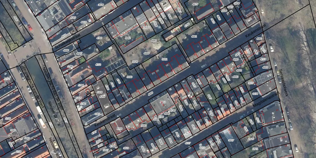 Het perceel waarop Keukenstraat 24 staat heeft een oppervlakte van 430 m². Dit is een groot perceel. De perceeloppervlakte wordt geregistreerd door het Kadaster. Gedetailleerde informatie over de maten van dit perceel kunt u vinden in het rapport Kadastrale kaart met maatvoering van Keukenstraat 24.