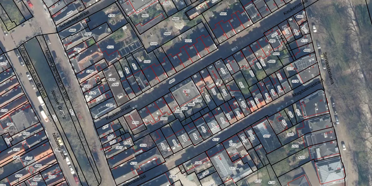 Het perceel waarop Keukenstraat 33 staat heeft een oppervlakte van 250 m². Dit is een middelgroot perceel. De perceeloppervlakte wordt geregistreerd door het Kadaster. Gedetailleerde informatie over de maten van dit perceel kunt u vinden in het rapport Kadastrale kaart met maatvoering van Keukenstraat 33.