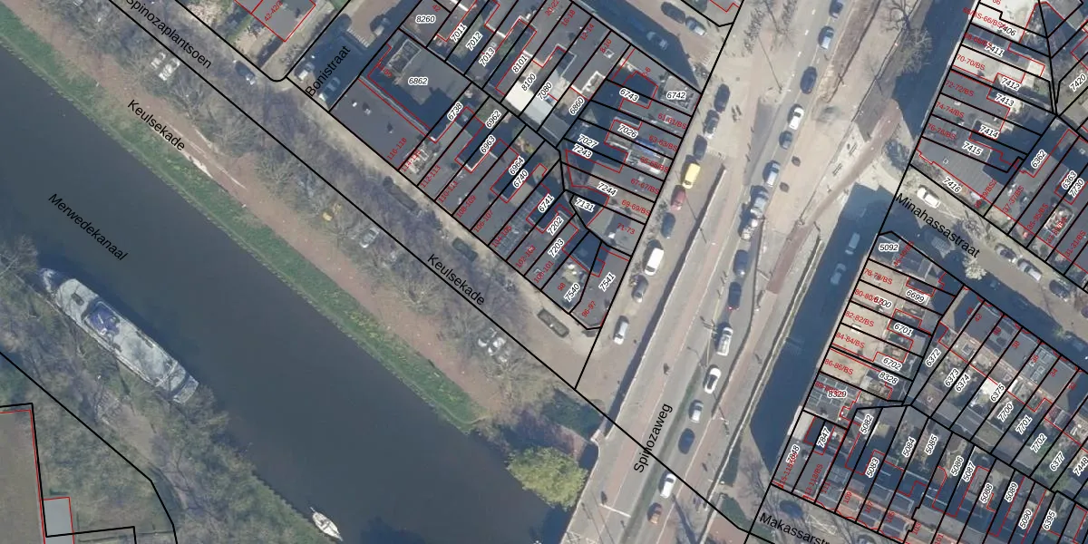 Het perceel waarop Keulsekade 100 staat heeft een oppervlakte van 64 m². Dit is een klein perceel. De perceeloppervlakte wordt geregistreerd door het Kadaster. Gedetailleerde informatie over de maten van dit perceel kunt u vinden in het rapport Kadastrale kaart met maatvoering van Keulsekade 100.