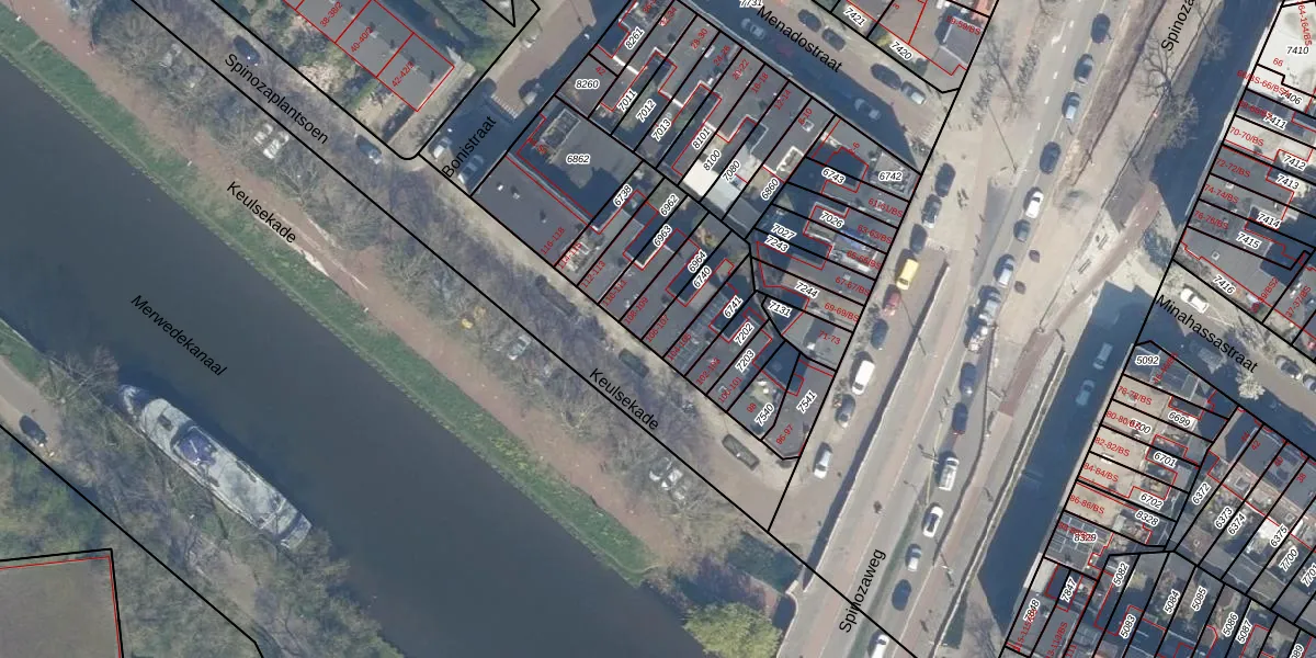 Het perceel waarop Keulsekade 107 staat heeft een oppervlakte van 93 m². Dit is een klein perceel. De perceeloppervlakte wordt geregistreerd door het Kadaster. Gedetailleerde informatie over de maten van dit perceel kunt u vinden in het rapport Kadastrale kaart met maatvoering van Keulsekade 107.