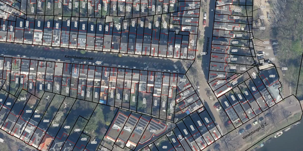 Kievitdwarsstraat 45-BS is gelegen op kadastraal perceel LWR01C2357. Deze kadastrale aanduiding is uniek en wordt gebruikt door het Kadaster om eigendomsrechten en andere zakelijke rechten vast te leggen. Het perceel maakt onderdeel uit van de kadastrale gemeente Lauwerecht.