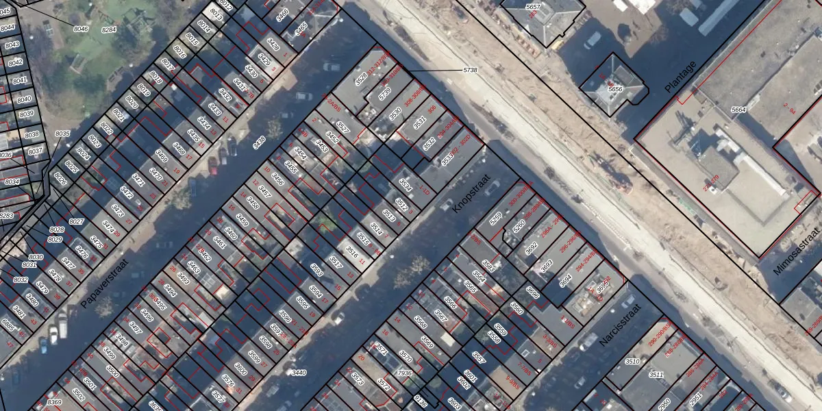 Het perceel waarop Knopstraat 3 staat heeft een oppervlakte van 77 m². Dit is een klein perceel. De perceeloppervlakte wordt geregistreerd door het Kadaster. Gedetailleerde informatie over de maten van dit perceel kunt u vinden in het rapport Kadastrale kaart met maatvoering van Knopstraat 3.