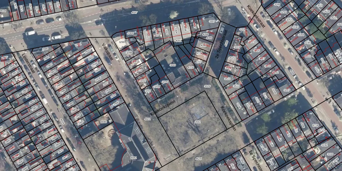Het perceel waarop Koekoeksplein 3 staat heeft een oppervlakte van 87 m². Dit is een klein perceel. De perceeloppervlakte wordt geregistreerd door het Kadaster. Gedetailleerde informatie over de maten van dit perceel kunt u vinden in het rapport Kadastrale kaart met maatvoering van Koekoeksplein 3.